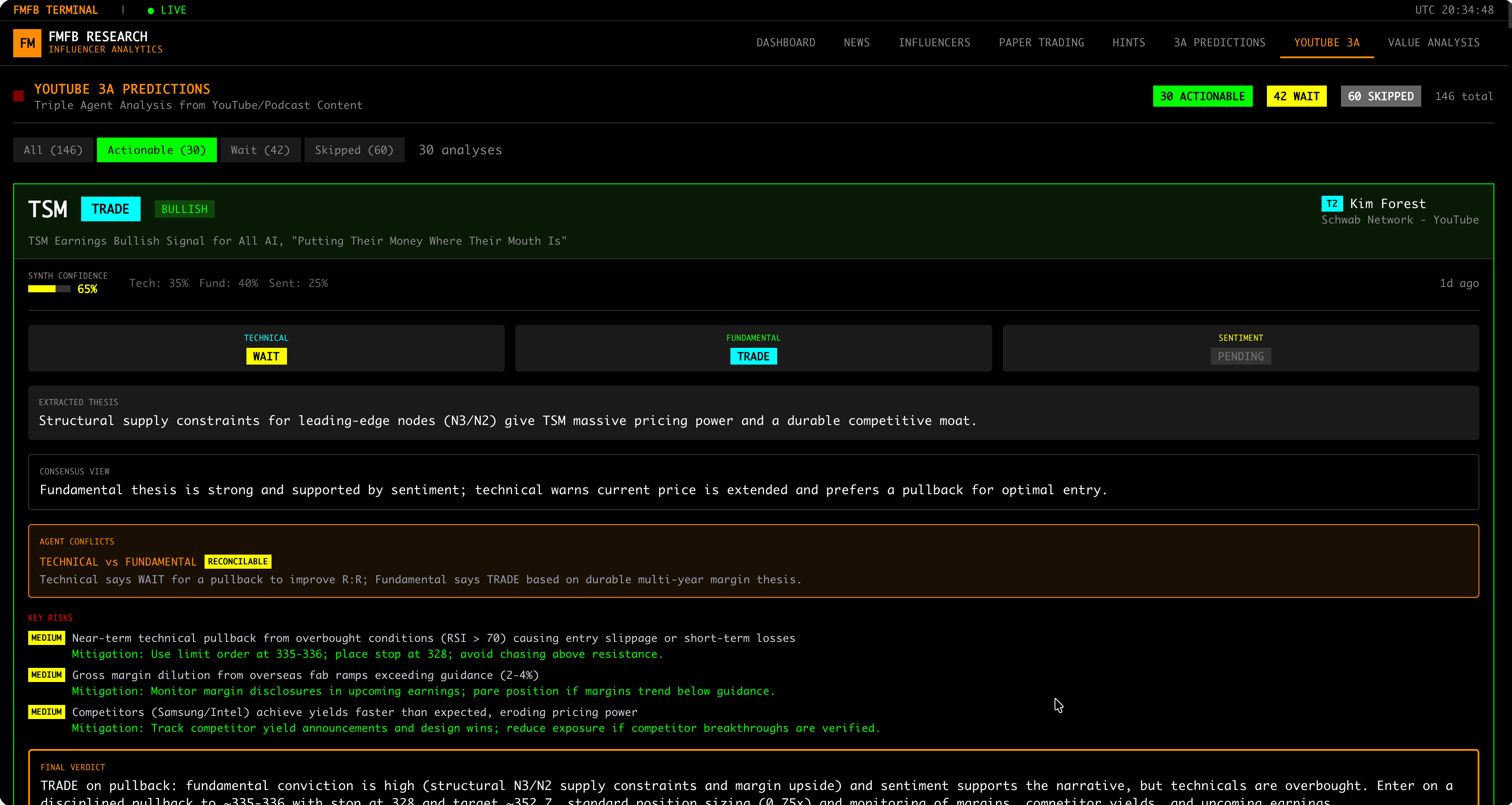 We monitor 400+ influencers and executives across CNBC, Twitter, podcasts, and earnings calls. Paper trade every prediction. Analyze voice stress when executives speak. Cross-check statements against SEC filings.